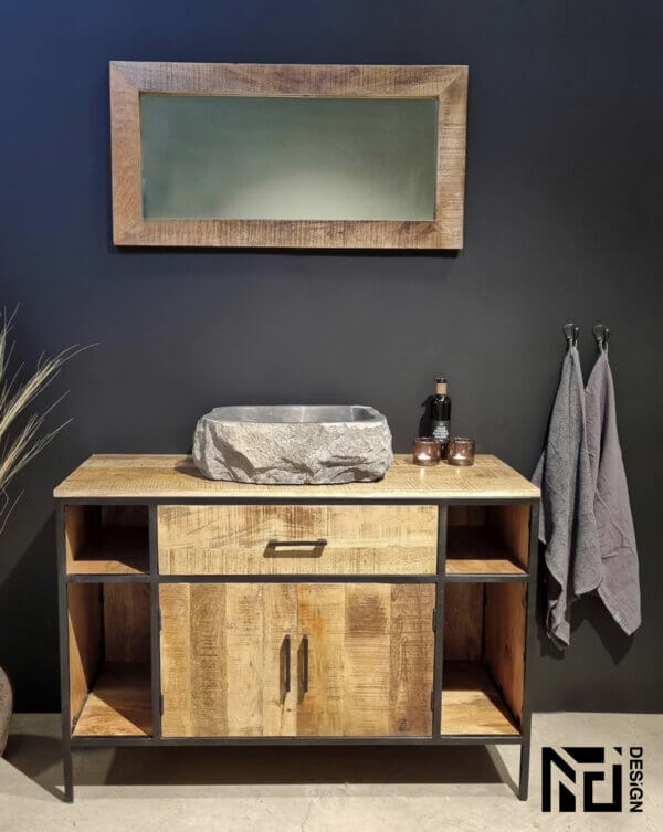 - Stijlvol en praktisch: Badkamermeubel Mangohout. De Badkamermeubel Mangohout is de perfecte keuze voor een stijlvolle en praktische oplossing in de badkamer. Dit hoogwaardige meubelstuk is behandeld om bestand te zijn tegen vocht en temperatuurschommelingen.
