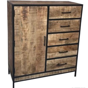 Mangohout afgewerkt met zwarte lak, Zwart gepoedercoat staal