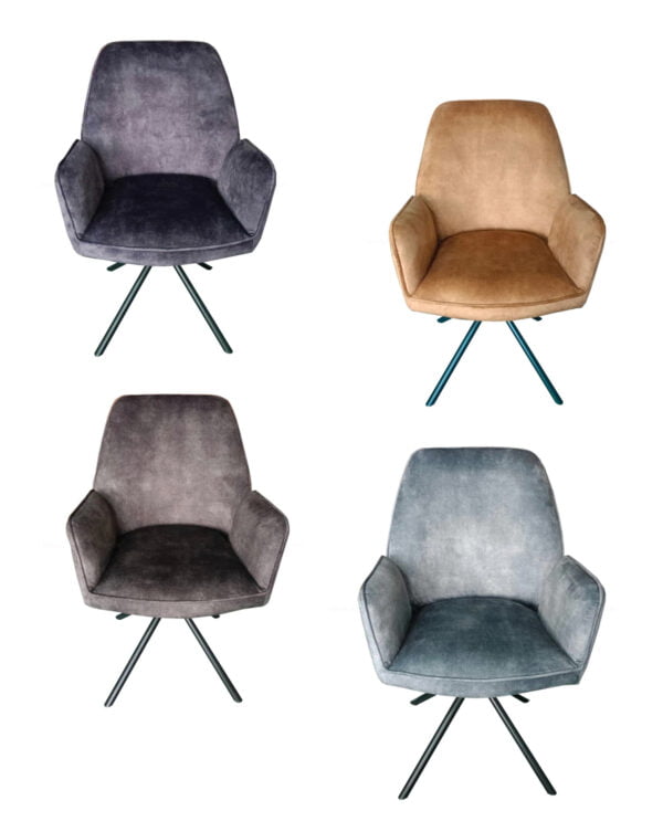 - Zacht en duurzaam: Velvet stof. De zitting en rugleuning van de stoel zijn bekleed met zacht aanvoelende velvet stof. Deze stof biedt niet alleen comfort, maar is ook duurzaam en gemakkelijk te onderhouden.