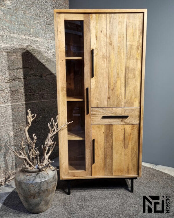 - Hoogwaardig Materiaal en Duurzame Constructie. De Wandkast Jayden is gemaakt van hoogwaardig mango hout met stalen poten die zwart gepoedercoat zijn. Dit zorgt voor zowel duurzaamheid als een stijlvolle uitstraling. Met aandacht voor detail en vakmanschap is deze kast ontworpen om lang mee te gaan.