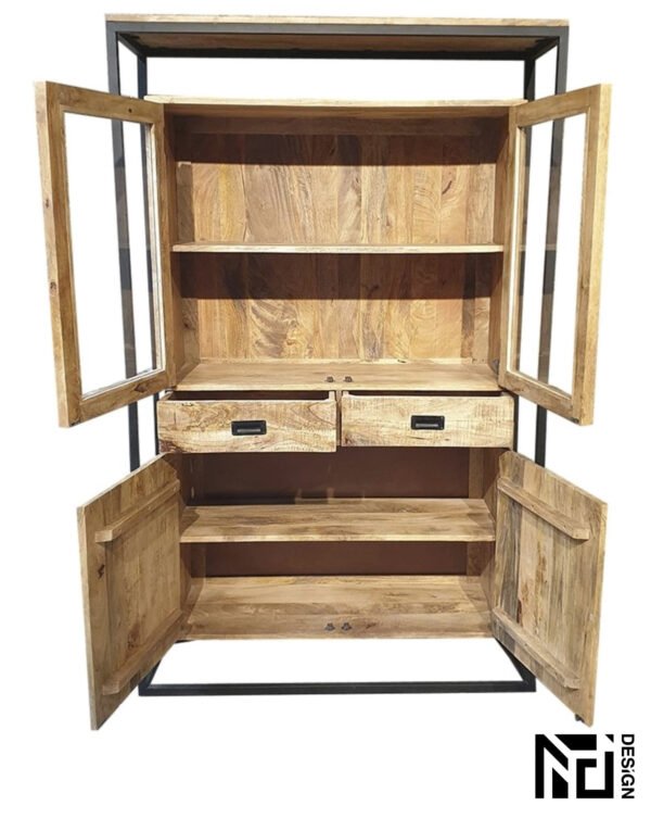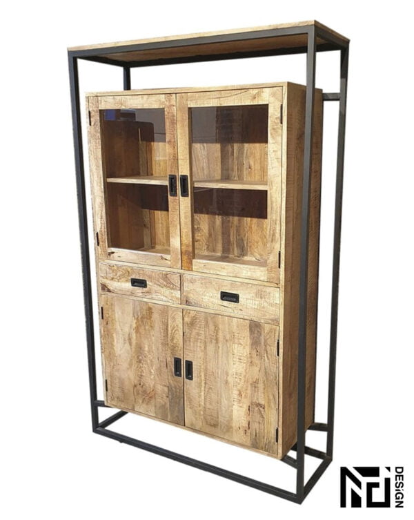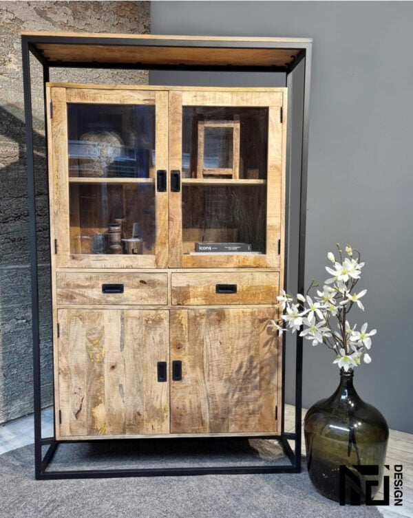 - Hoogwaardig Materiaal en Duurzaamheid. De Vitrinekast Len is gemaakt van hoogwaardig mango hout met gepoedercoat stalen poten. Dit materiaal zorgt niet alleen voor een prachtige uitstraling, maar ook voor duurzaamheid en stevigheid. U kunt erop vertrouwen dat deze kast lang meegaat en uw favoriete items veilig en stijlvol presenteert.
